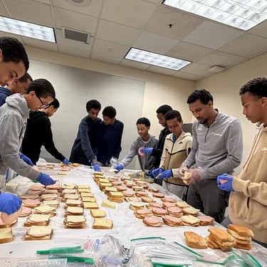 Dekike Estifanos, a devoted group of deacons serving under Dekike Tsion, gathered in the spirit of faith and service to prepare and pack over 415 sandwiches for individuals in need at Embry Rucker Homeless Shelter during the sacred season of Great Lent.